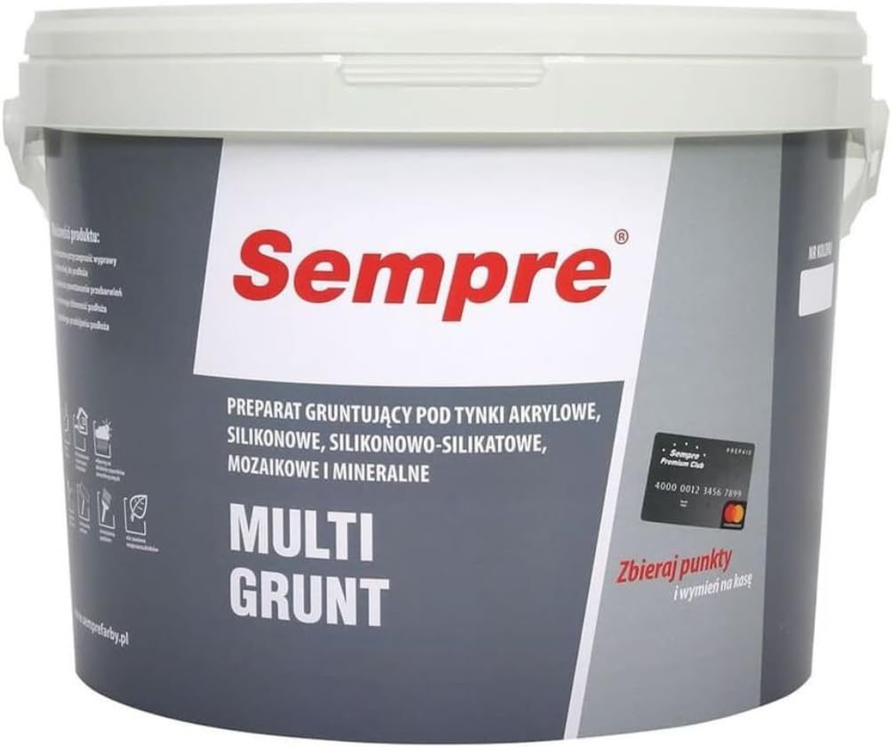 15 liter package is enough to paint 115 m2. Sempre Multigrunt is used to prepare the substrate for acrylic, mineral polysilicate and silicone plasters