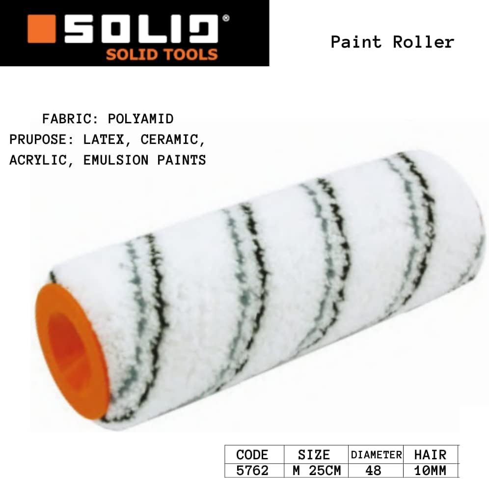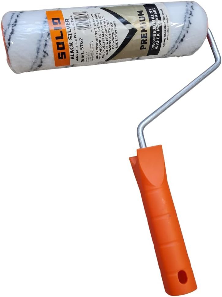 Solid® – 25cm Profesional Paint Roller Black Silver Poliamid Premium and Roller Handle Hard Wearing Polyamide Materia